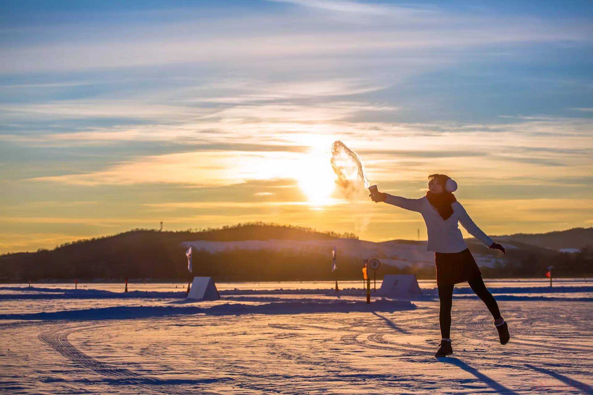 ▎零下29度的环境中,一杯热水就能让人玩得不亦乐乎。