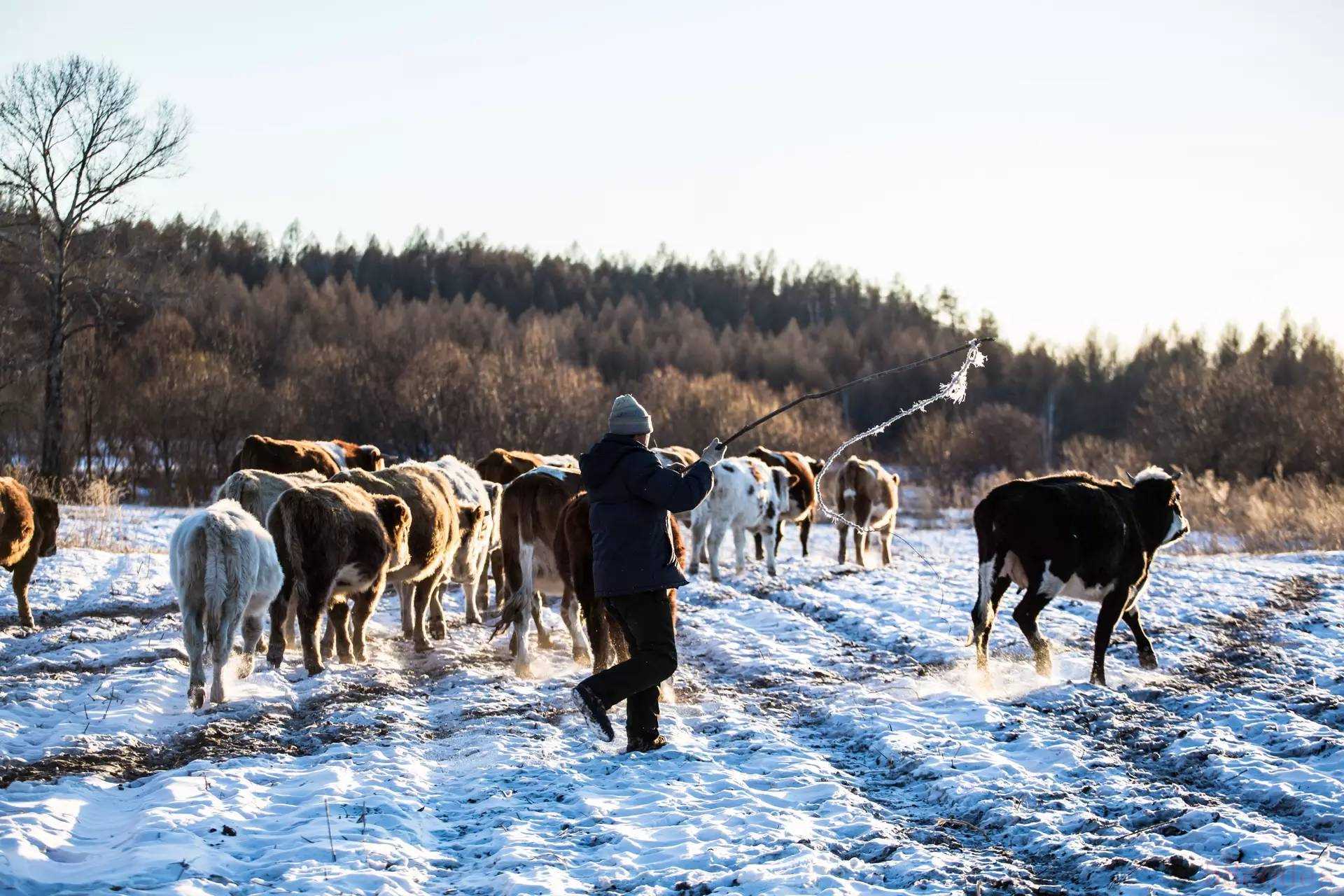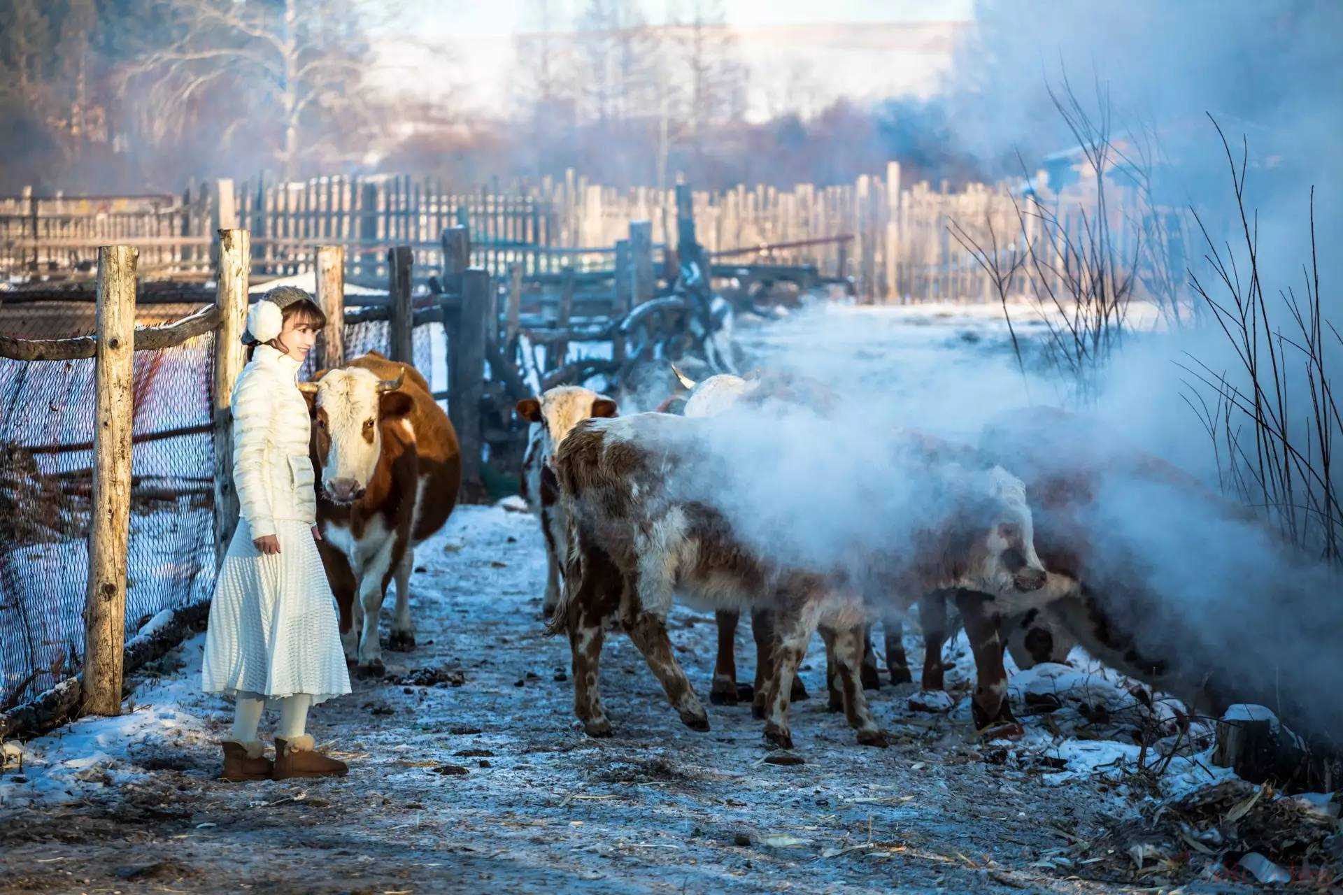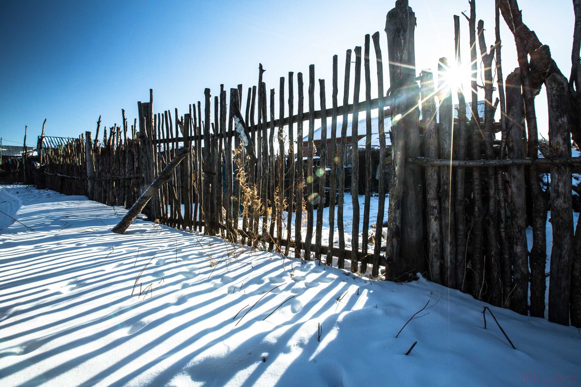 被白雪覆盖的村落一片安静,家家户户有炊烟冒出,路上却始终不见人影,只有尽职的护家犬听到陌生人靠近,不停吠叫。下午四点,太阳已经落至地平线,牛羊成群回圈,脚印将雪地弄得斑斑驳驳。