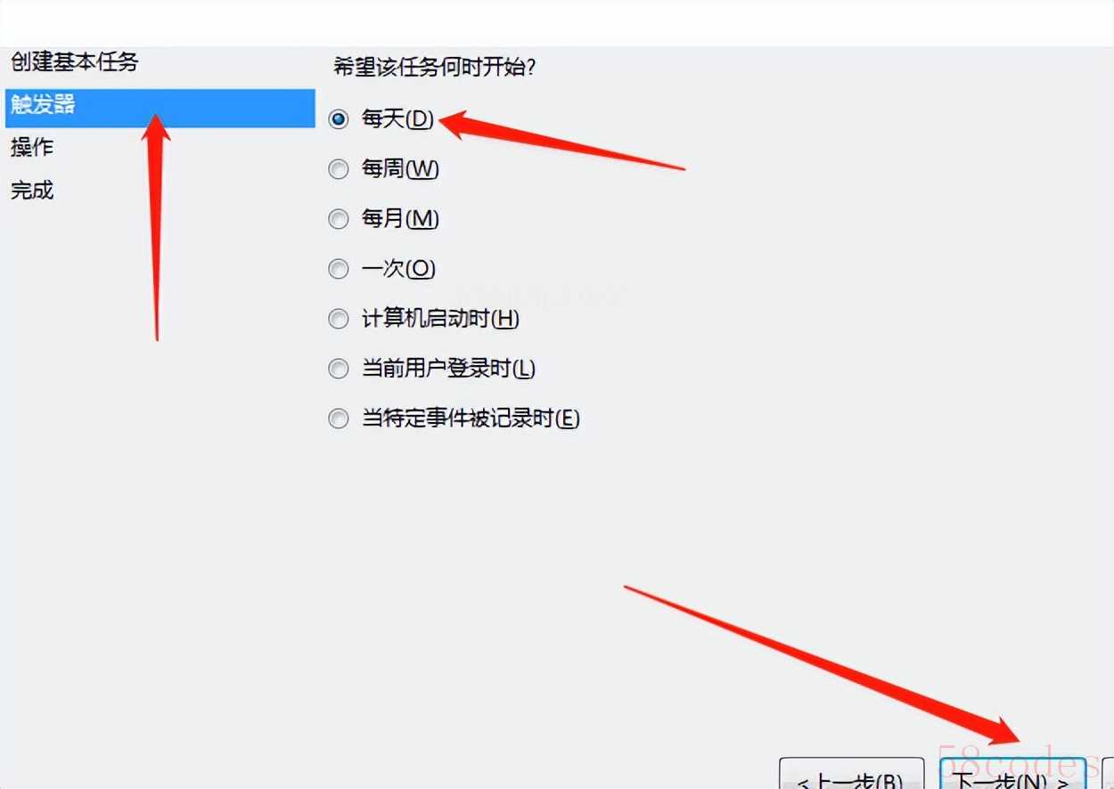 选择你希望任务执行的时间,比如“每天”、“每周”或“一次”。