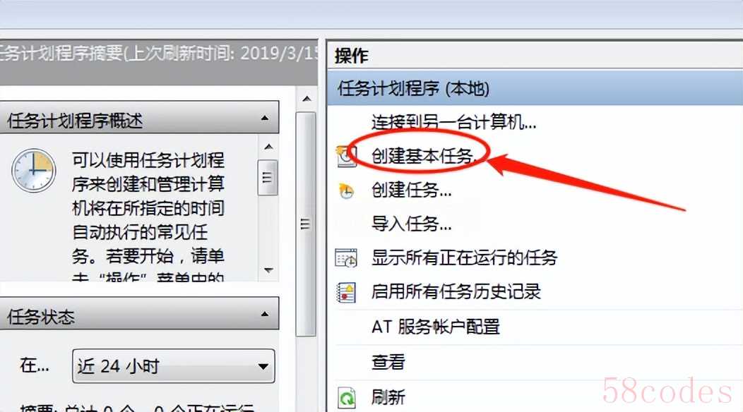 在任务计划程序库右侧,点击“创建基本任务...”。