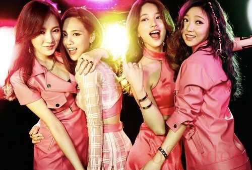 在韩国出道的miss A组合中有两名中国成员孟佳(左一)、王霏霏(左二)。
