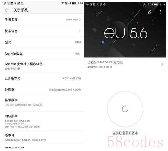 前文提到,cool1 dual搭载的是基于Android 6.0平台的EUI 5.6操作系统,在整体UI设计方面和乐视手机上的EUI是一致的,整体设计风格非常的简洁,而图标方面更是采用扁平化设计,与华为自家的EMUI具有浓浓的商务气息相比,EUI显得小清新多了,至少不会显得那么沉闷无聊。