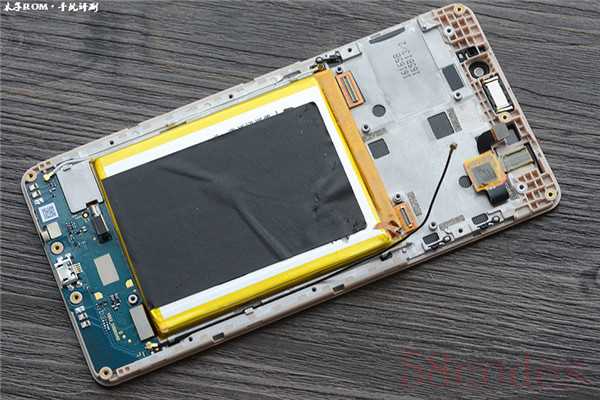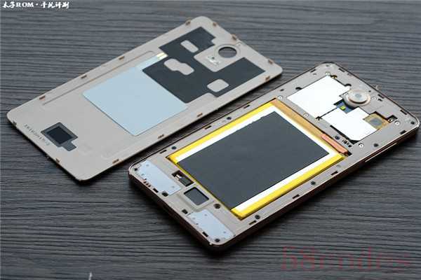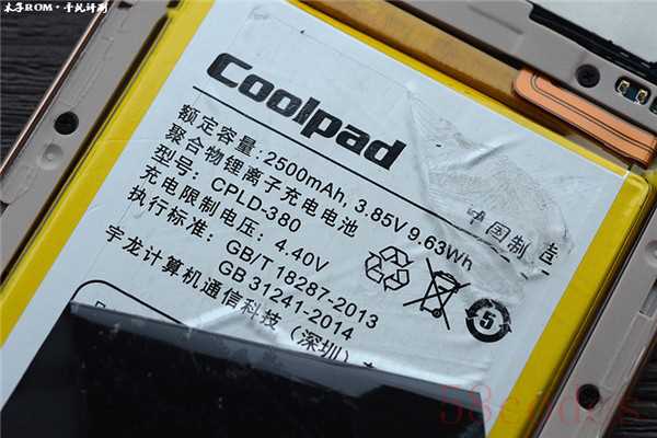 酷派锋尚3的电池不能更换,可以看到电池上有一大块的石墨散热膜,帮助电池散热。6/27