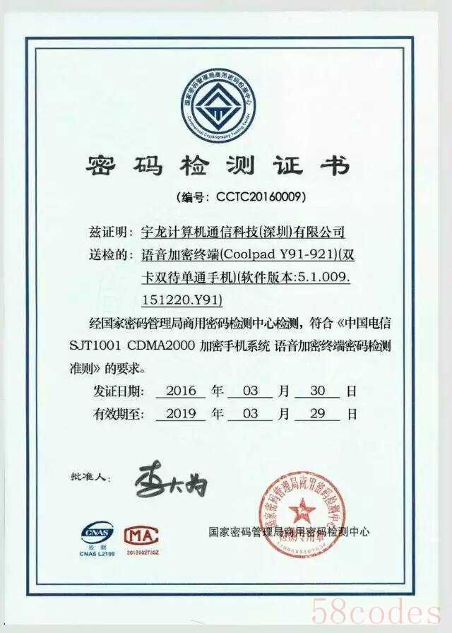 另一方面,酷派今日又取得国家级安全中心的检测证书:在这个证书里,大家可以清楚的看到,酷派y91也就是锋尚pro2取得了密码检测证书。