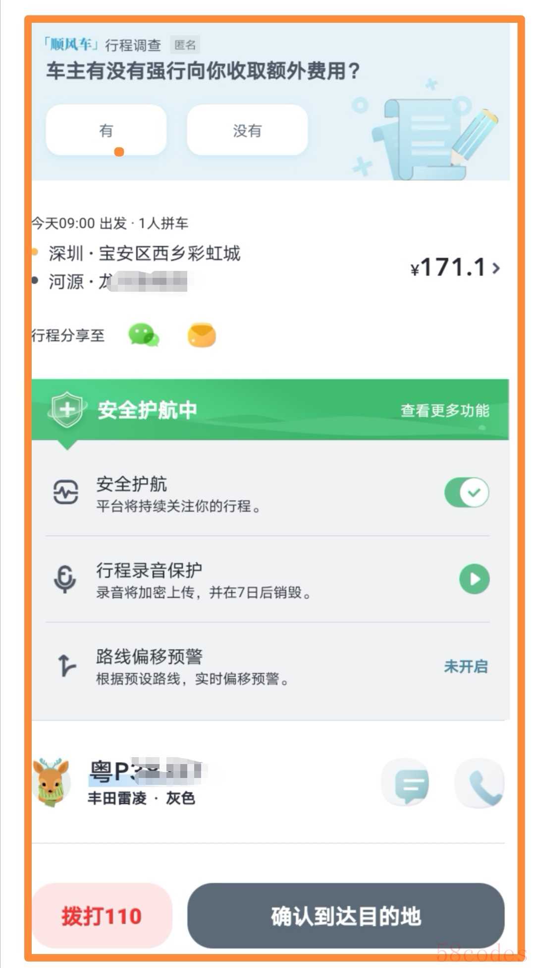 事情经过是这样的,从深圳市预约了嘀嗒顺风车前往河源市,行程是9:00出发的,司机接单后跟乘客说9:00之前限行,9:30才能到,乘客说没问题。
