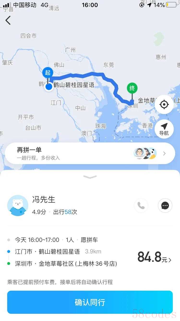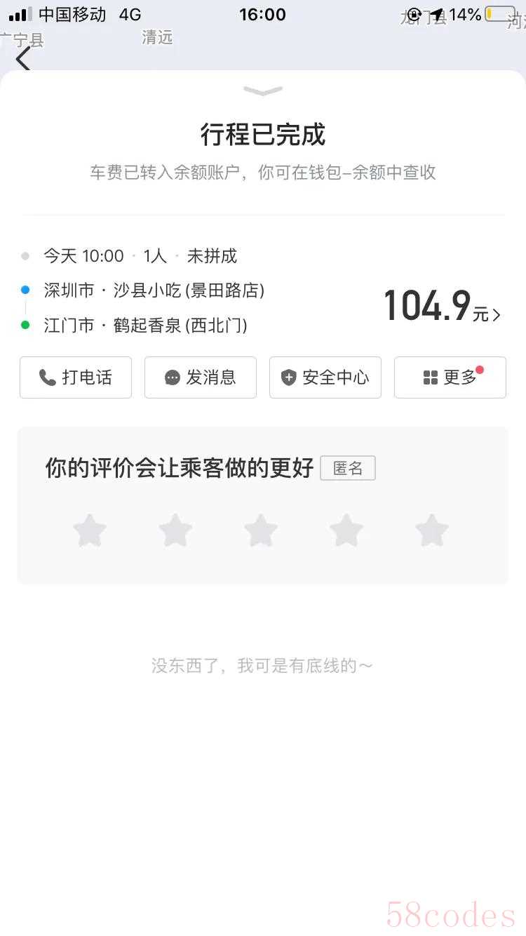 深圳至江门105样子,江门至深圳85同样145公里。顺风车城市定价差别到了百分之二十。高速乘客出从江门到深圳能挣饭钱吗?