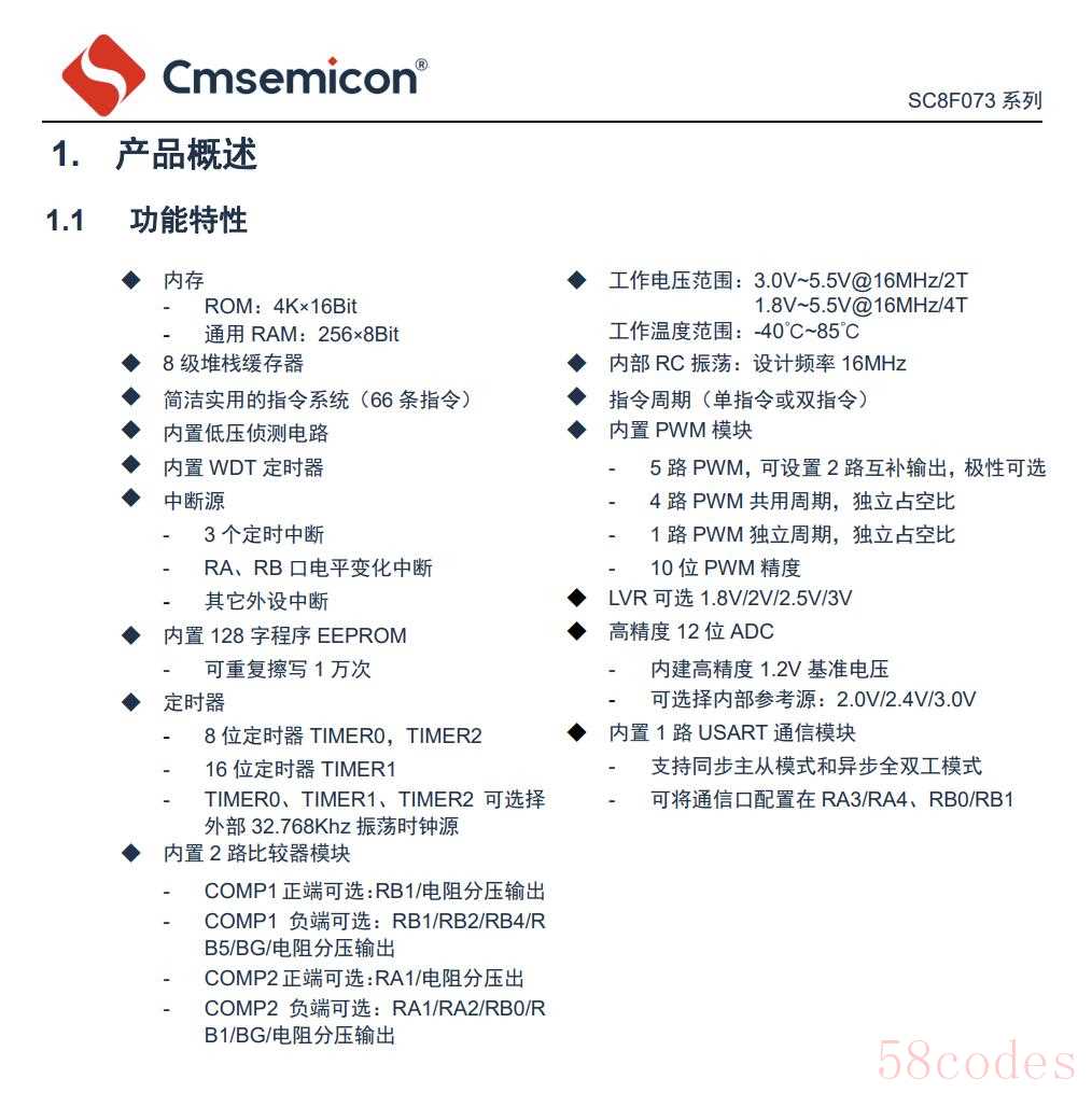 Cmsemicon中微半导体SC8F073系列详细资料图。