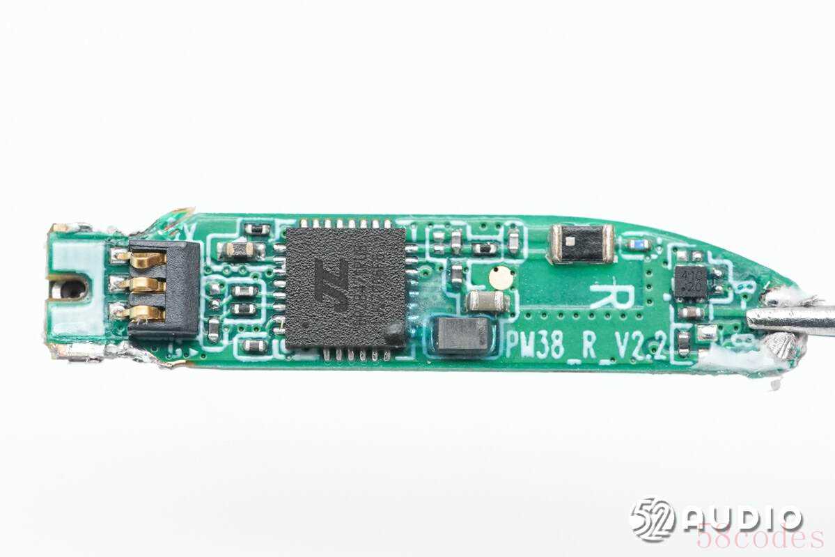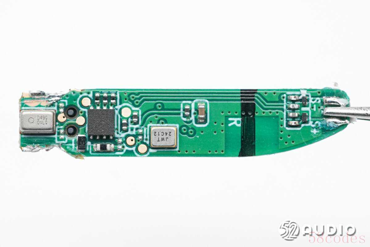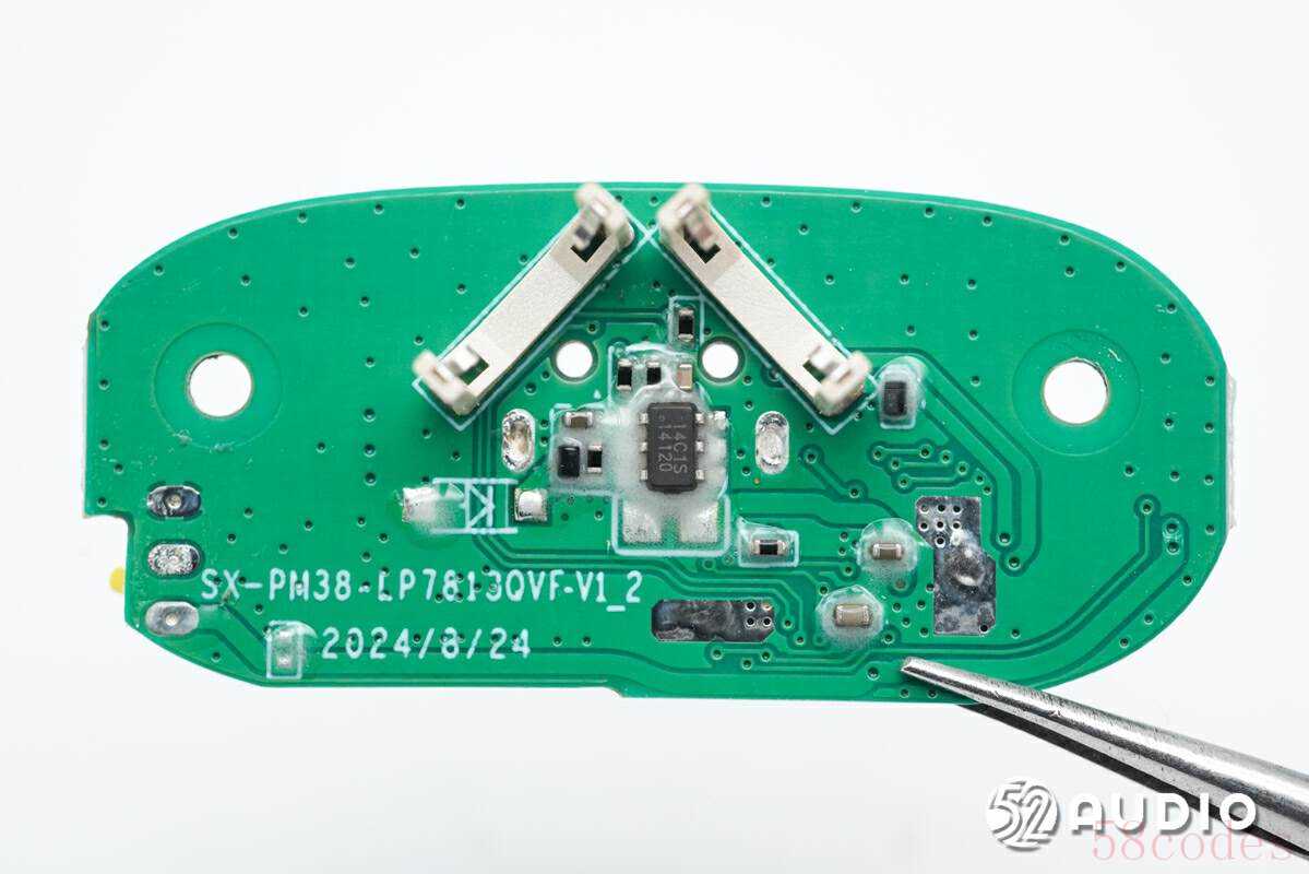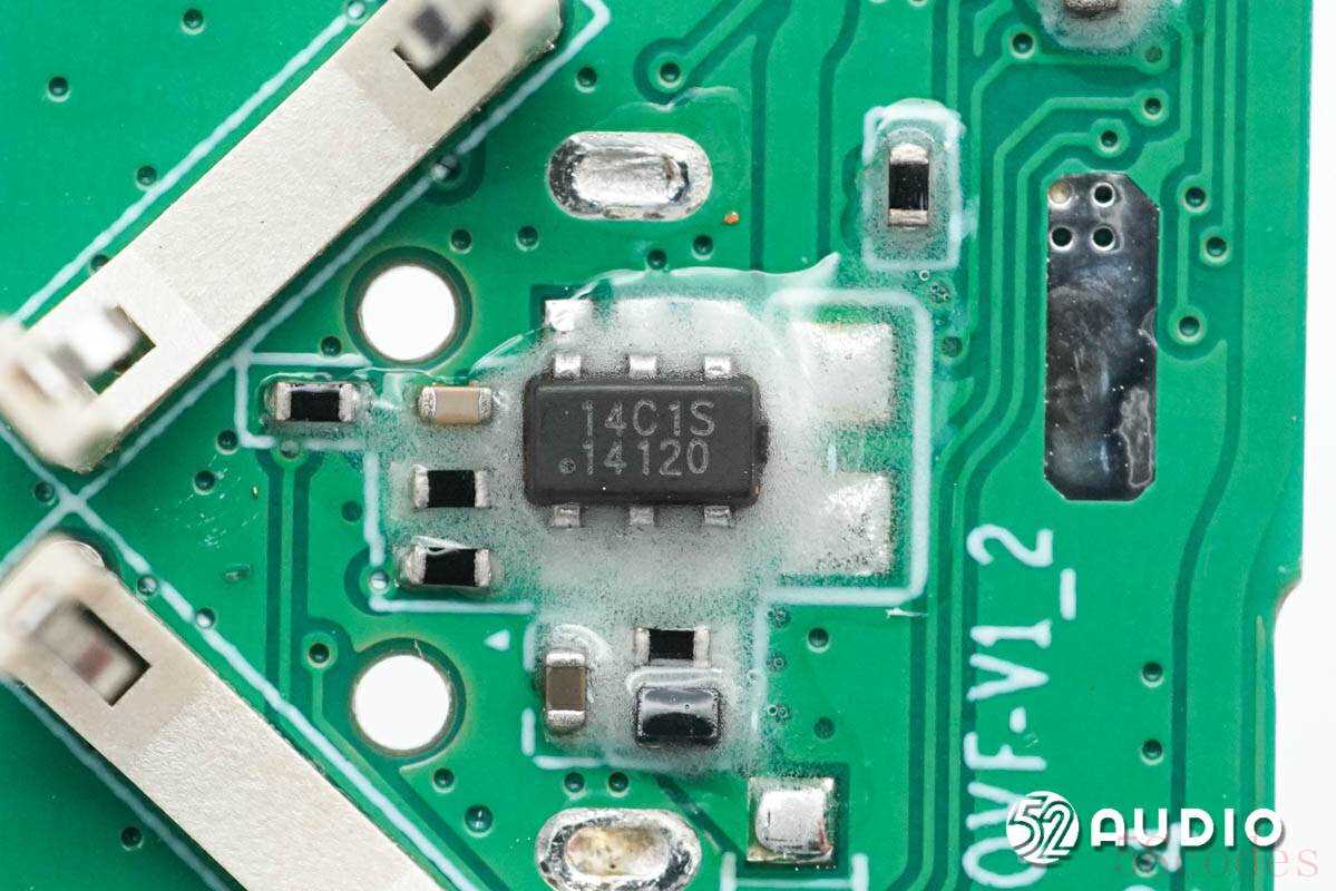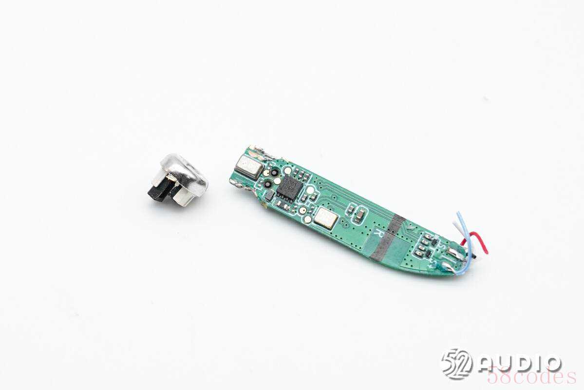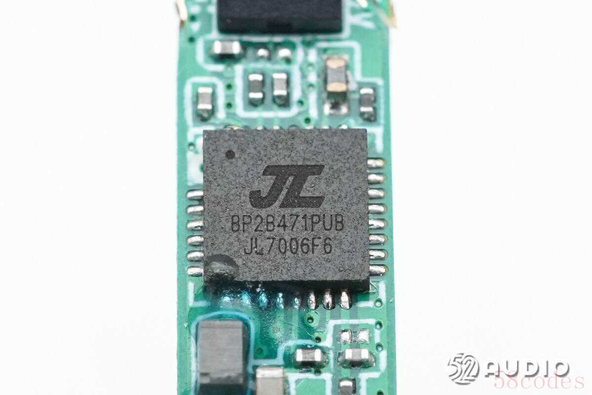 耳机内部采用了13mm大尺寸动圈单元,内置MIC-POWER微电新能源35mAh钢壳扣式电池;主板上,搭载了一颗MEMS麦克风拾音,采用了JL杰理JL7006F6的蓝牙音频SoC,用于无线连接和音频数据处理;Winsemi稳先微WSDF2311C锂电保护IC负责电池的过充、过放、过流、短路等保护。