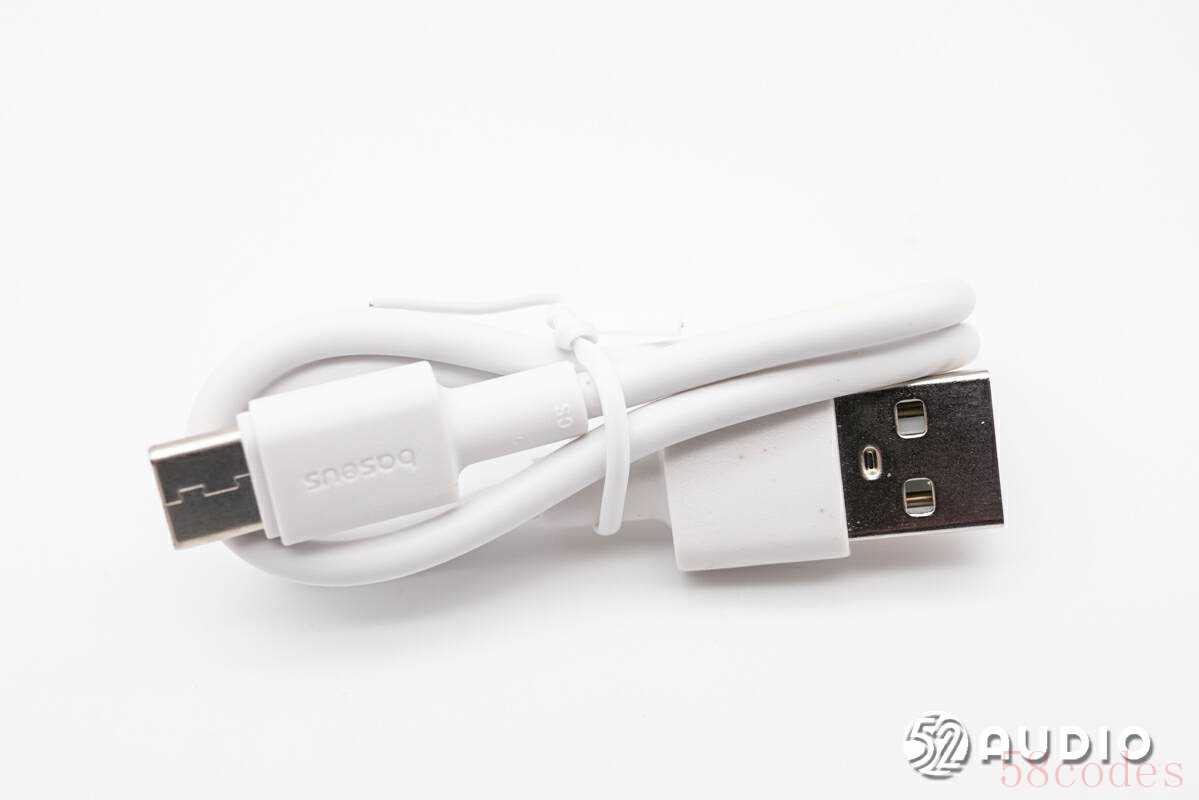 充电盒充电线采用了USB-A to Type-C接口,端口雕刻“Baseus”品牌LOGO。