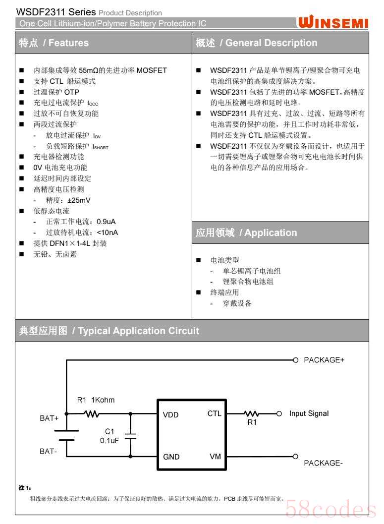 Winsemi稳先微WSDF2311系列详细资料图。据我爱音频网拆解了解到,目前已有Redmi、一加、倍思、realme、Marshall、泥炭、华为、OPPO、魅族、传音、漫步者、声阔、FIIL、声智、公牛、天猫精灵、酷睿视、Nothing、荣耀、QCY、绿联、SoundPEATS、唱吧、京东京造、骷髅头、JLab等众多品牌旗下产品采用了稳先微锂电保护芯片。