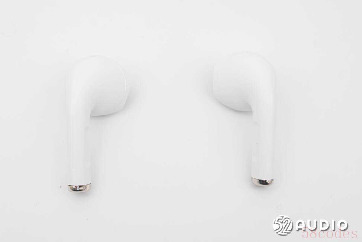 耳机外侧外观一览,耳机柄细长,侧边设计触摸控制的平面区域,支持滑动调节音量。