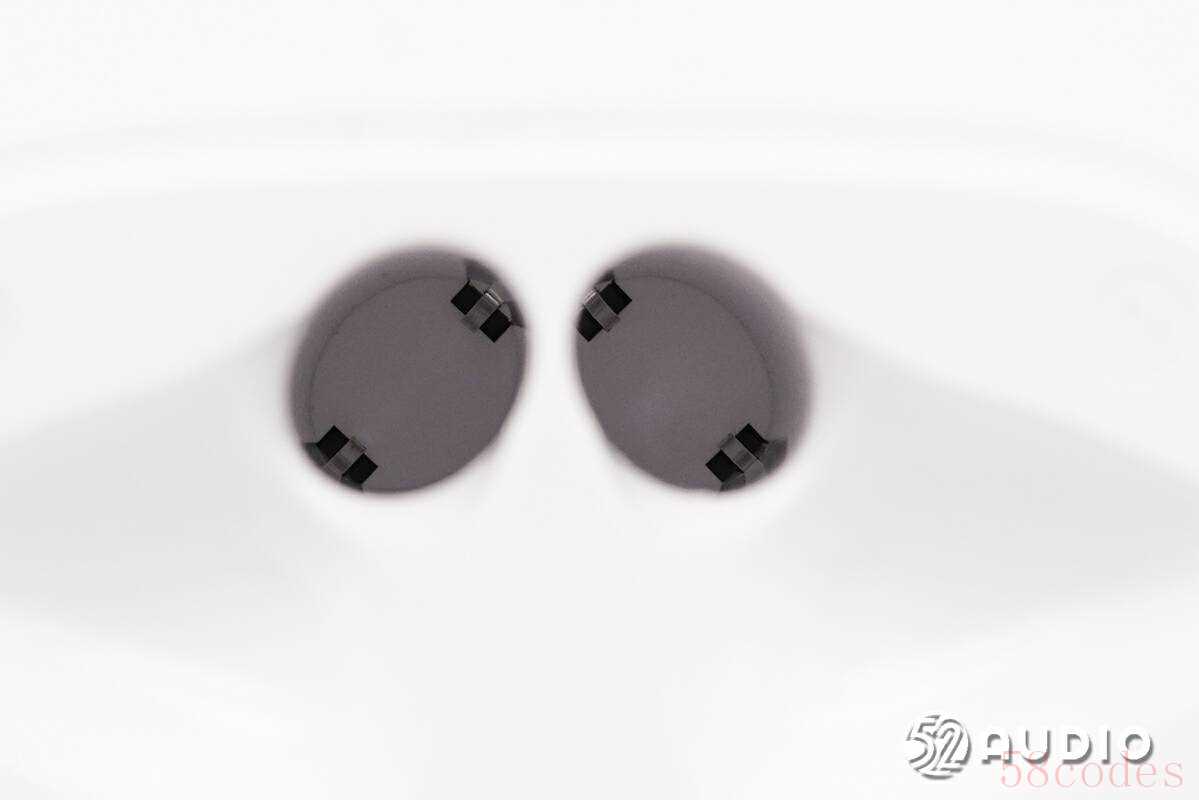 为耳机充电的金属触点,位于耳机柄座舱底部。
