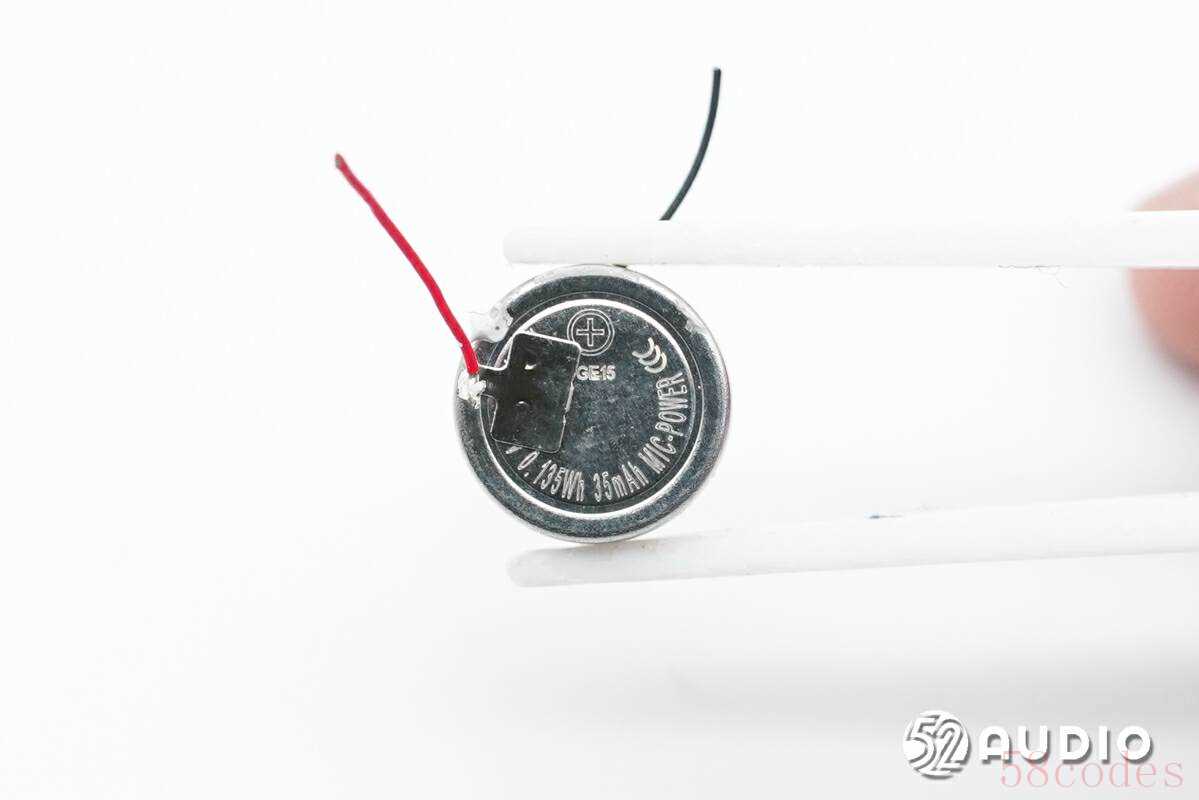 耳机内置的钢壳扣式电池,容量:35mAh 0.135Wh,来自MIC-POWER微电新能源。