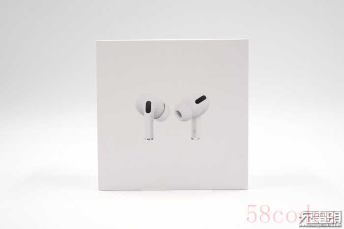 AirPods Pro的包装盒十分简洁,采用白色硬纸盒,没有过多其他颜色元素的装饰。盒子正面印制了一对AirPods Pro耳机效果图图片,用来区分盒内物品品类,同时也方便消费者对于产品外观的认知。