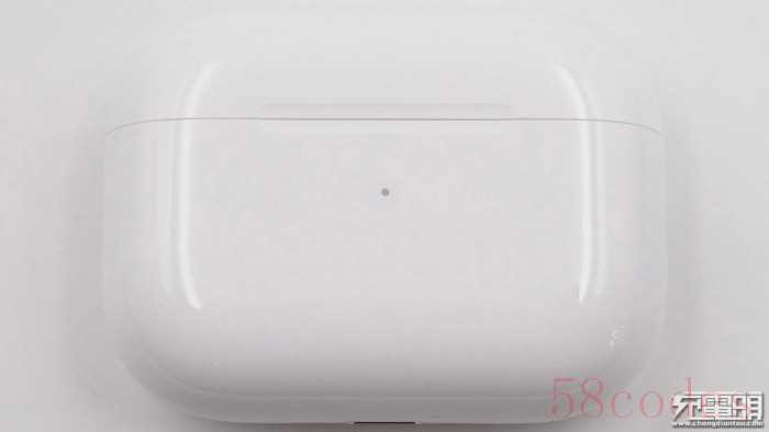 AirPods Pro充电仓采用白色塑料材质制作,钢琴烤漆工艺,表面十分光滑,整体造型较为宽长,四周都有圆弧过渡,整体手感还是比较圆润丝滑。正面有一小点,它是充电仓的工作指示灯。