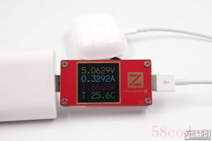使用紫米18W PD充电器给AirPods Pro充电,这枚充电器快充协议有PD、QC、AFC、FCP,当前电压为5.02V,电流0.33A,功率1.68W,可以正常充电。
