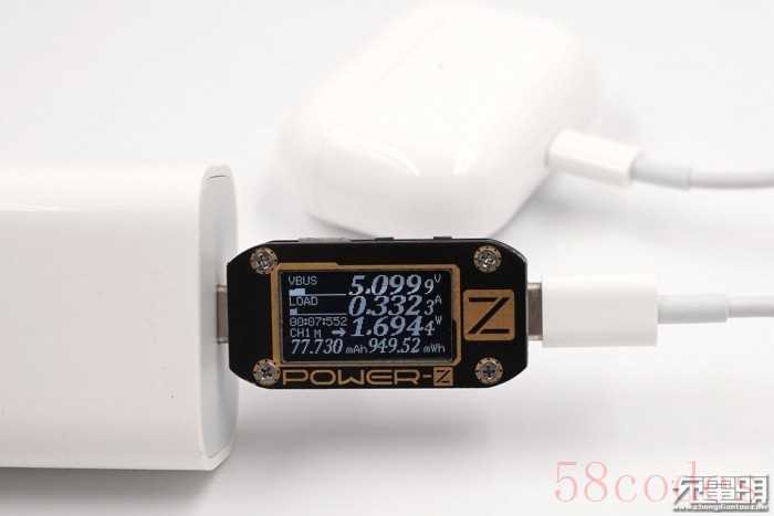 使用苹果18W PD充电器给AirPods Pro充电,这枚充电器快充协议只有PD,当前电压为5.09V,电流0.33A,功率1.69W,可以正常充电。