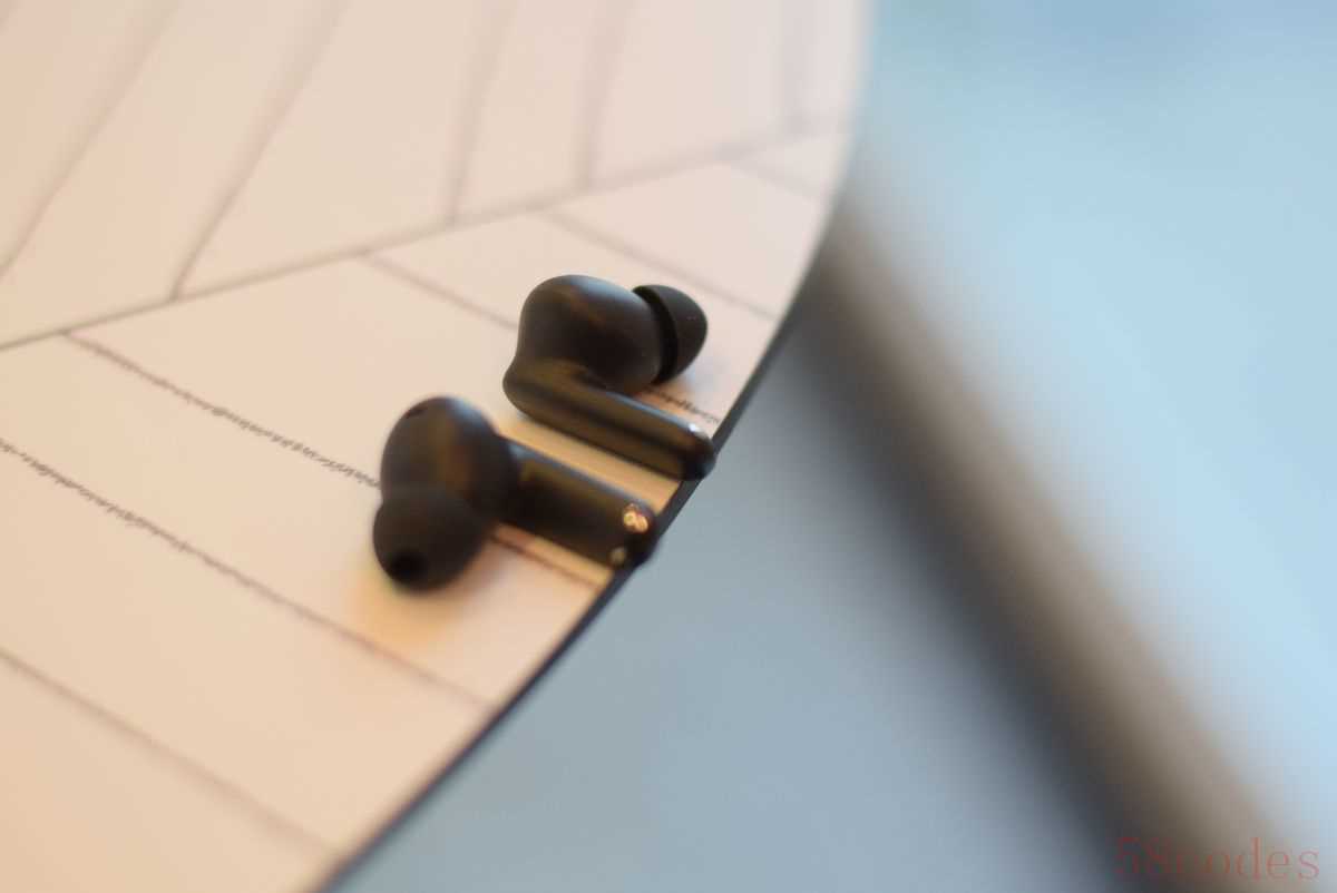 "半入耳式设计:" 半入耳式设计兼顾了佩戴舒适度和音质表现,同时相比入耳式耳机,也更容易摘取和放置。