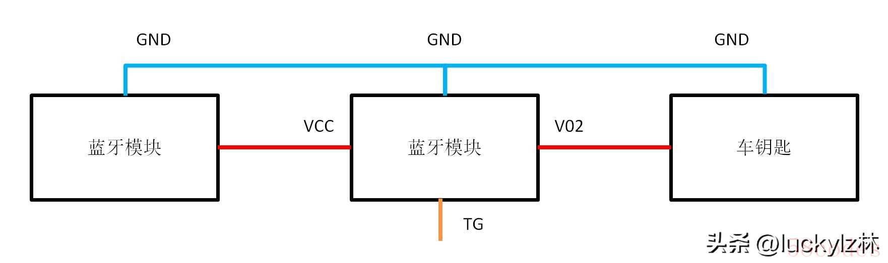 正常蓝牙解锁后,VCC供电给V02,连接车钥匙的电源正;