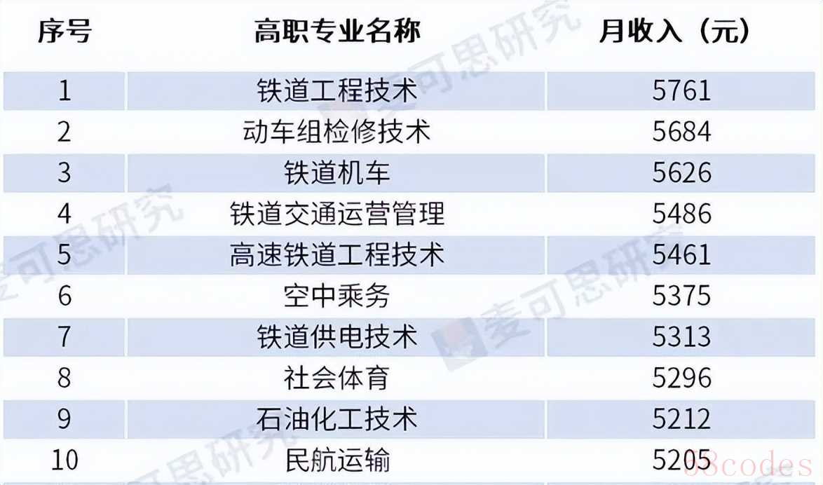 根据麦可思研究近日公布的2021届高职生毕业半年后月收入前50强专业榜单,即使是位于前三位的高薪专业,月收入也不到6000元。