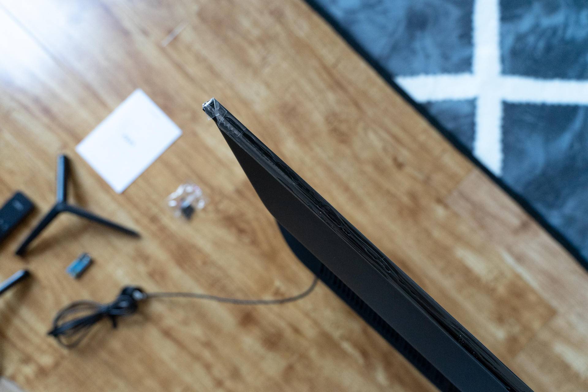 四周的边框等宽,不要太舒服。要知道,市面上绝大多数的所谓窄边显示器,其实也都是三边窄,留有一个宽的底框,这可是电视。对于工艺上而言,屏幕越大,边框的成型压力越大。以自己曾经的工艺工程师视角审视,X40C的边框和框架的结合度很高,看不到丝毫变形或者缝隙的痕迹,也没有因热成型造成的压力痕,完整性很高,可见所选工厂的配套设备质量保障还不错。