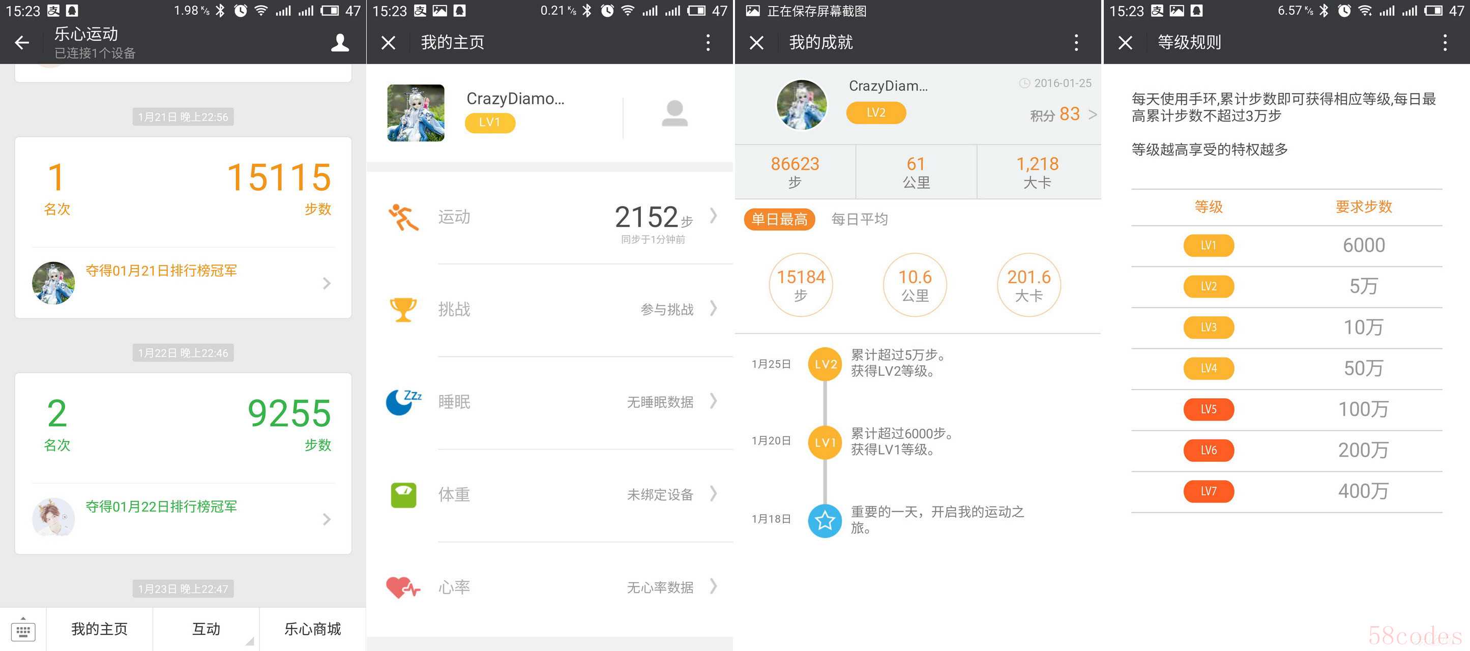 这里我还发现一个问题,就是我的主页上有LV等级,在主页上显示1,点进成就里显示2,再返回主页,LV也变成2级了。实际上我几天前就超过5万步,而且数据也同步过。也就是说,只有我们点开成就是,系统才会计算等级,积分,里程碑事件这些数值。这个需要改进,应该是在数据同步后就马上计算,然后同步更新显示。等级的作用是享有特权,但是目前LV2的我还没发现。期待后面升级更高。LV7的步数,最快也要4个多月,按我的进度大概是1年左右吧。呵呵。