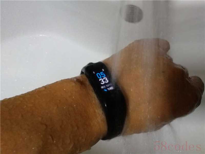 乐心手环5S在水龙头下持续淋水5分钟,丝毫没有影响到手环的运行。看看,在淋水过程中依然正常运行,防水棒棒的。IP68这样的防水等级,游泳时佩戴也毫无问题。