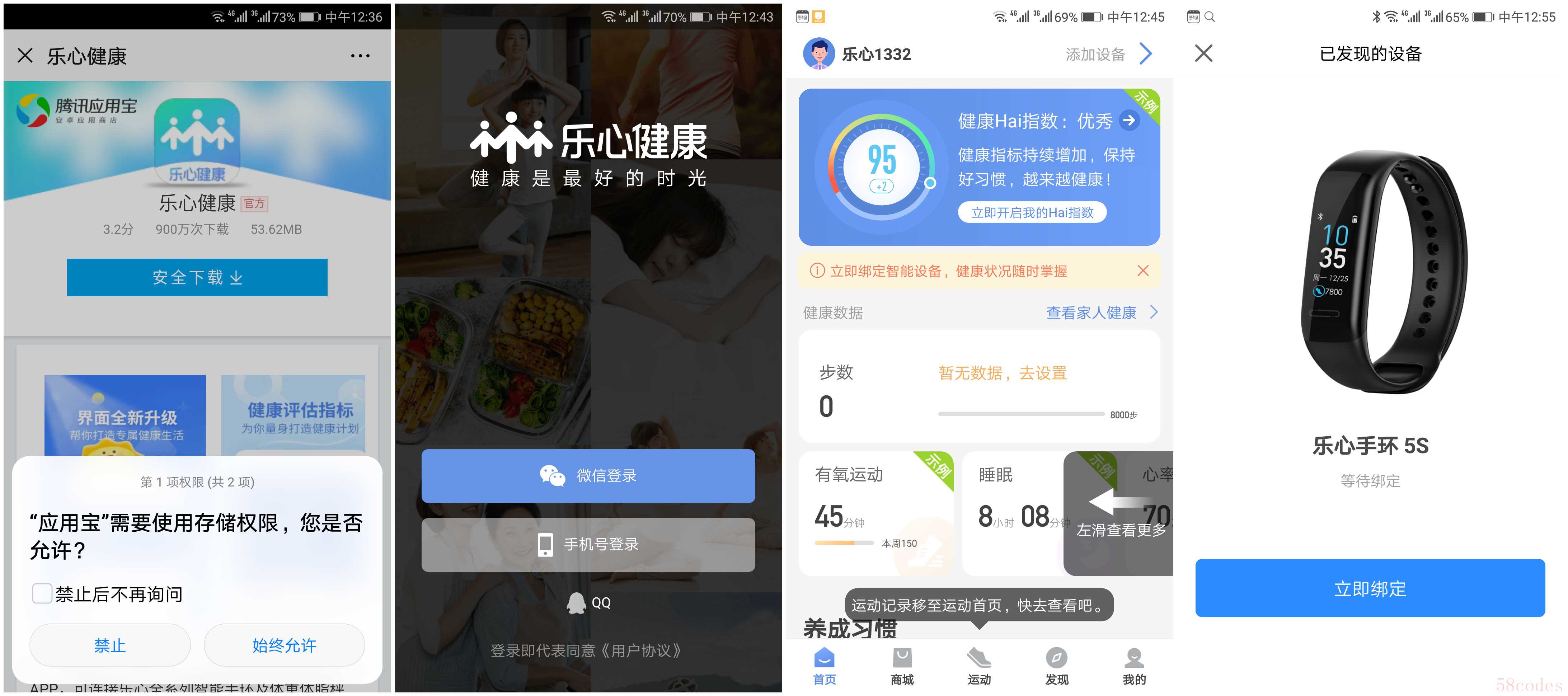 乐心运动APP主页界面分为五大板块:首页、商城、运动、发现、我的。各个板块还有下一级菜单,除了可以同步手环上的步数、心率、消耗卡路里等数据以外,还可以记录有氧运动时间、睡眠时间等有关身体健康的数据,功能相当强大。打开APP就可以查看各项数据详情,操作简单快捷上手。