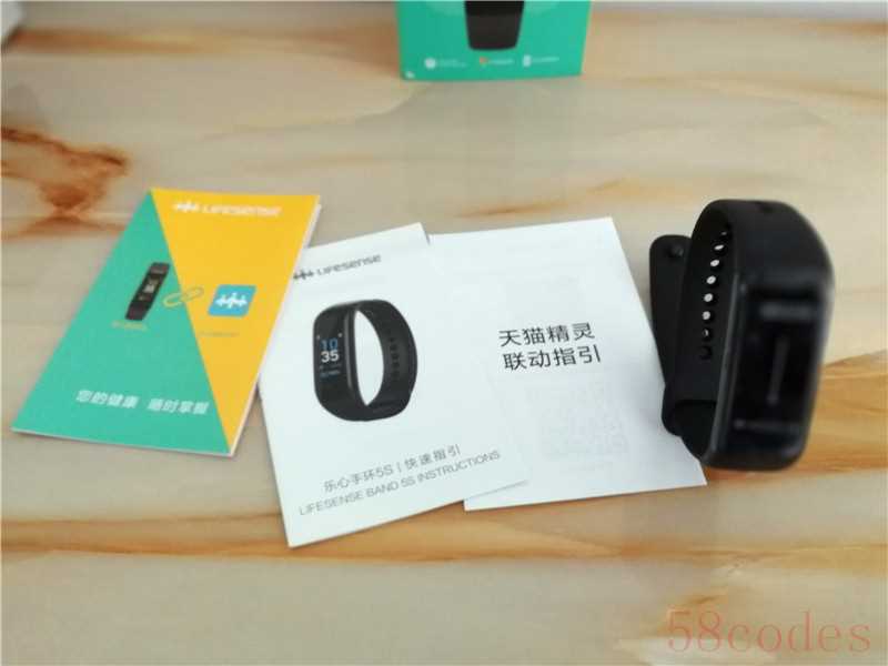乐心手环5S产品配件除了机身主体之外,还有说明书,宣传页和天猫联动的说明。