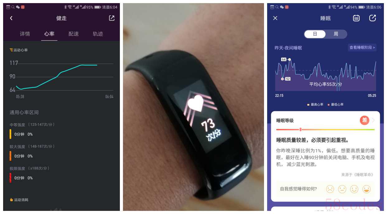 乐心手环5S腕带亲肤柔软,机身轻薄,可安心佩戴入睡。睡眠过程中,睡眠监测功可自动记录睡眠状况,分析睡眠质量,生成睡眠报告,一目了然,科学数据分析,让用户了解自身作息规律,更懂自己,拥有健康的睡眠。看看我的睡眠数据分析,质量较差啊,得改善一下睡眠了。