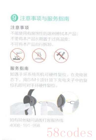 除充电功能外,一旦手环硬件故障时,还可以在通过这个RESET孔,对手环进行重置。