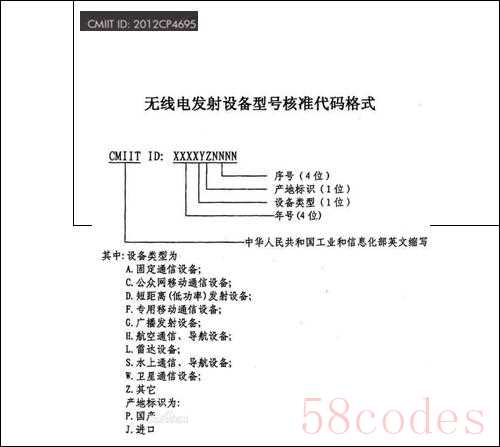 CMIIT ID即无线电发射设备型号核准代码。无线电发射设备定义为各种发射无线电波的设备,但不包含可辐射电磁波的工业、科研、医疗设备、电气化运输系统、高压电力线及其他电器装置等。在无线电发射设备,包括手机(具有Wifi或者蓝牙功能),蓝牙耳机,无线路由器,无线网卡等无线产品上均有体现。