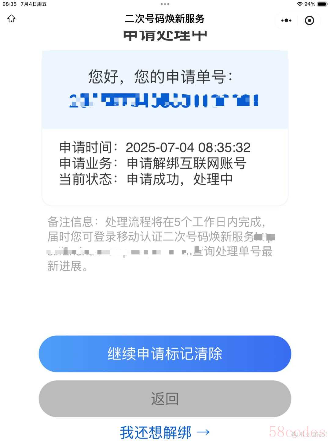 - 90 天限制,记清楚:同一个号码解同一个 APP,90 天内只能申请一次。