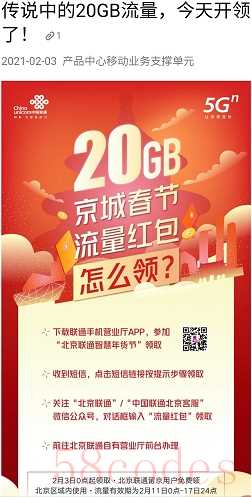 运营商的工作人员同时表示,这20G属于北京本地流量,使用的有效期为春节假期7天(2月11日0时至17日24时),过期失效,且每个号码限领一次。