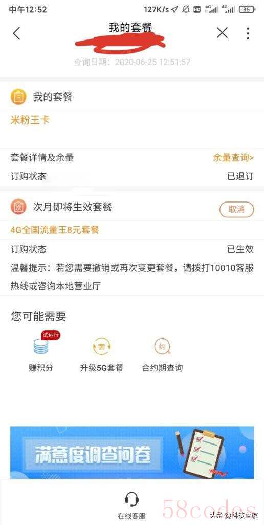 之前办理了靓号,作者因为手头上还有其他卡,这张卡就是接个验证码什么的一个月19块钱总感觉不太划算,所以就开始找各种方法可以改的最低套餐,昨天刚到手激活完第一件事情就去联系客服改8元套餐,今天早上给我打电话我没接到但是还是给我改了