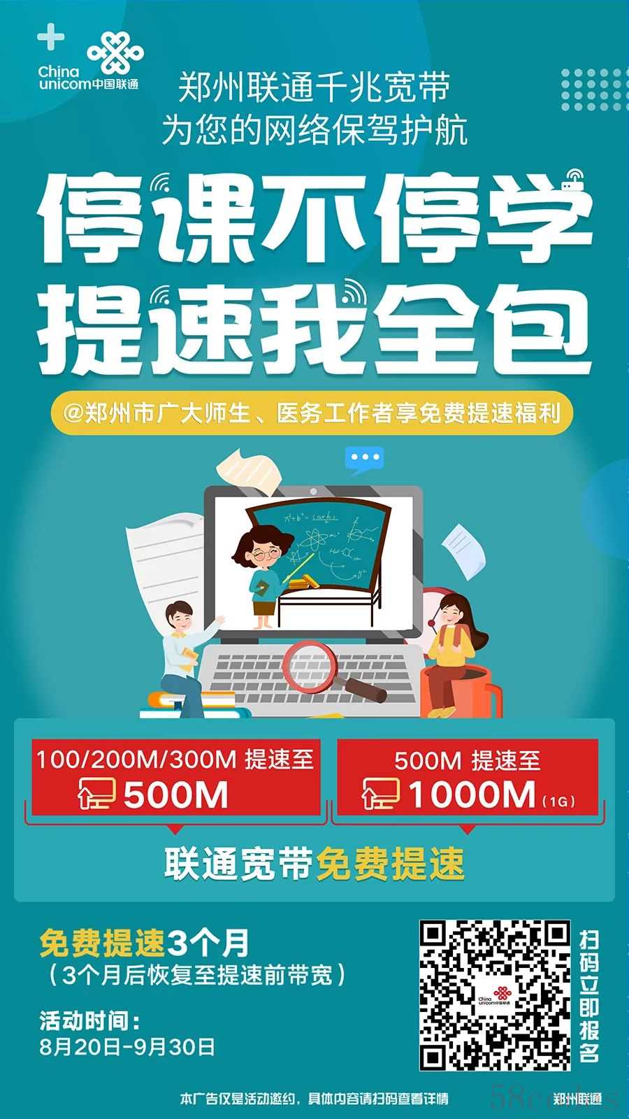 好消息!中国联通现在正面向郑州地区推出免费升级宽带的活动!
