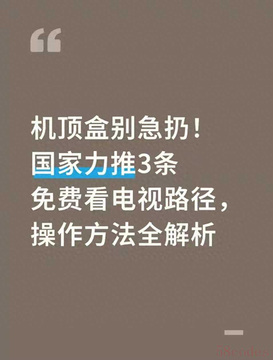 家里那台老掉牙的机顶盒,是不是早被你扔角落吃灰了?觉得智能电视装一堆APP还得充会员,不如手机看?或者换了宽带电视后,老有线盒彻底吃灰?别扔!最近国家发力推3条免费看电视的“正规路子”,不用花一分钱会员,也能看央视、卫视直播,追本地新闻,甚至看好多经典频道!今儿个咱一条一条掰碎了讲,手把手教你咋操作,看完能省不少冤枉钱~