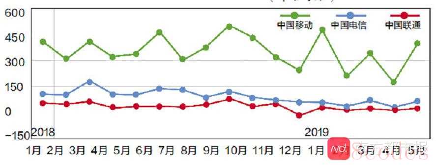 根据三大运营商2019年5月份的运营数据显示,今年5月份,移动宽带用户净增395.5万用户,累计宽带用户约为1.73亿户;而电信、联通的宽带用户净增用户分别为83万户、42.9万户,累计用户分别为1.49亿户、8316万户。