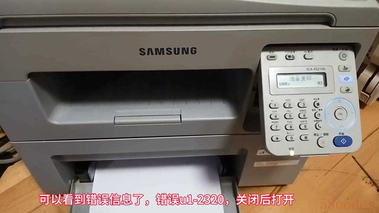 今天来看下这款经典的三星打印机,它的型号是4521hs,这款机器有十年左右了,客户形容开机报错,不能打印。开机来看一下具体得故障现象。