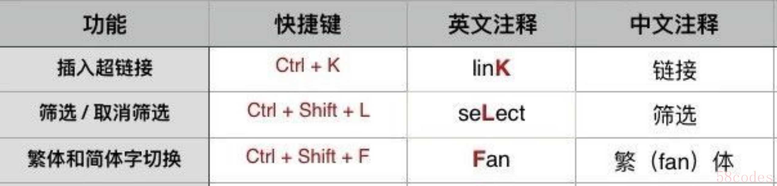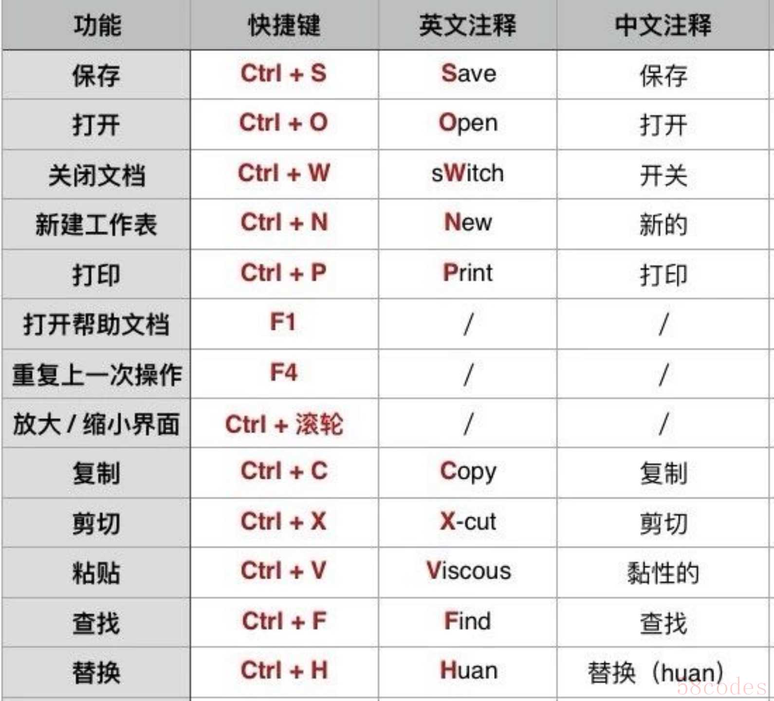 四.常用快捷键记忆表格以上分享的12个常用的快捷键,既实用又简单,如果你觉得还不够的话,小编通过联想记忆法,根据功能划分,整理了下方「常用快捷键记忆表格」,希望对你有帮助。