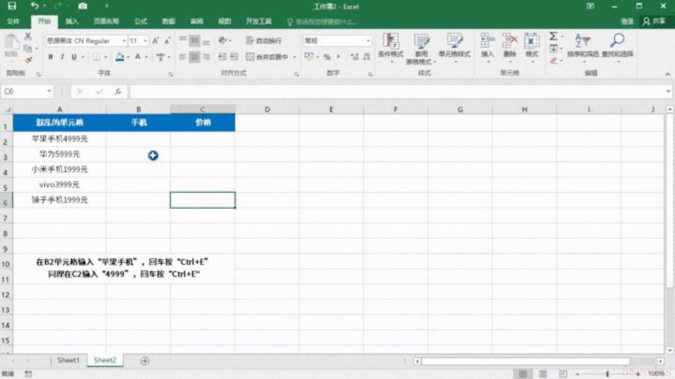 Ctrl+E拆分单元格1.2,快速拆分单元格
