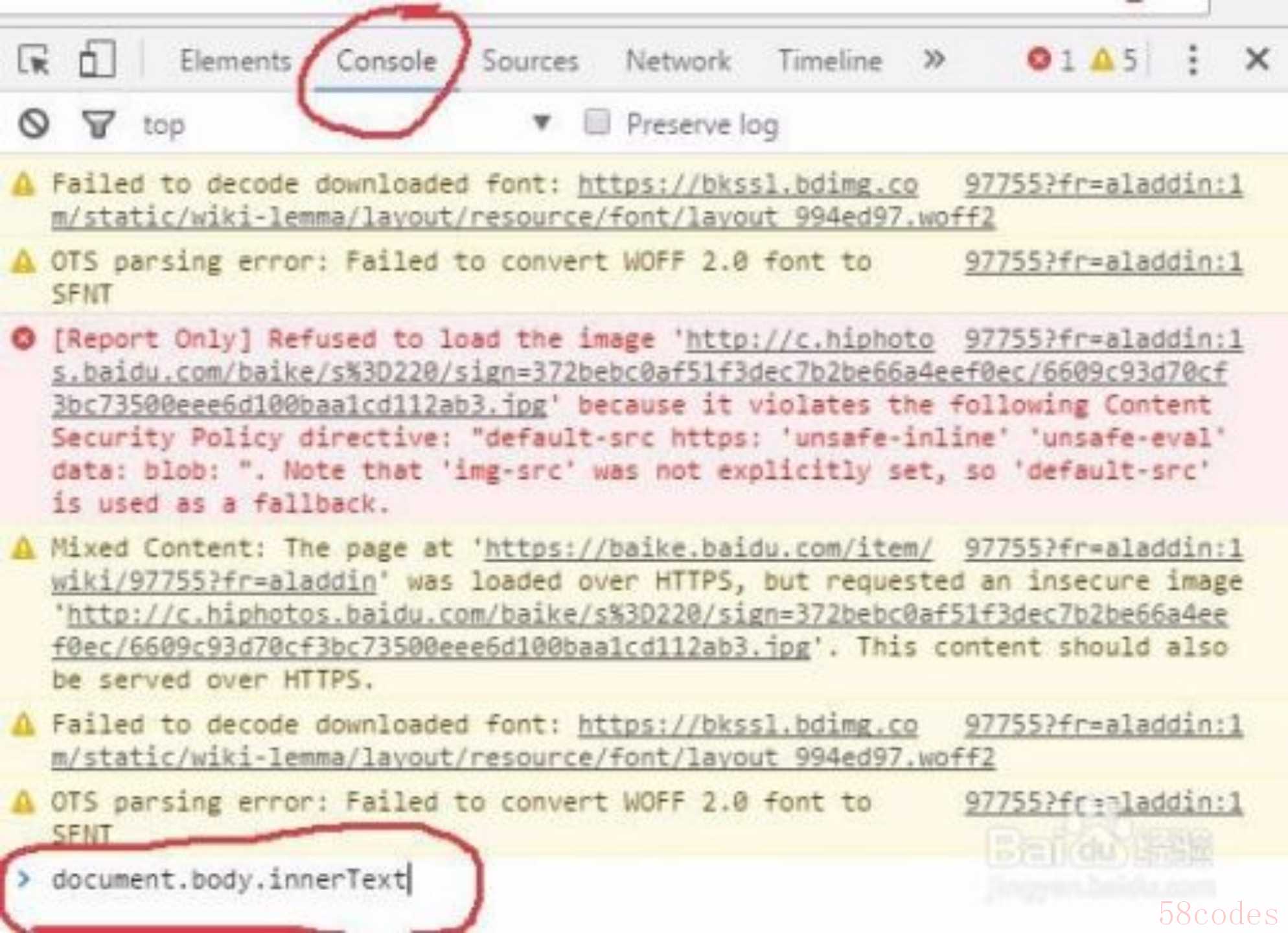 我们一般只需要其中的一段话,不想进行注册使用。这时我们可以使用F12键,然后点击"console", 输入:document.body.innerText,然后点击【Enter】。出现下图界面。