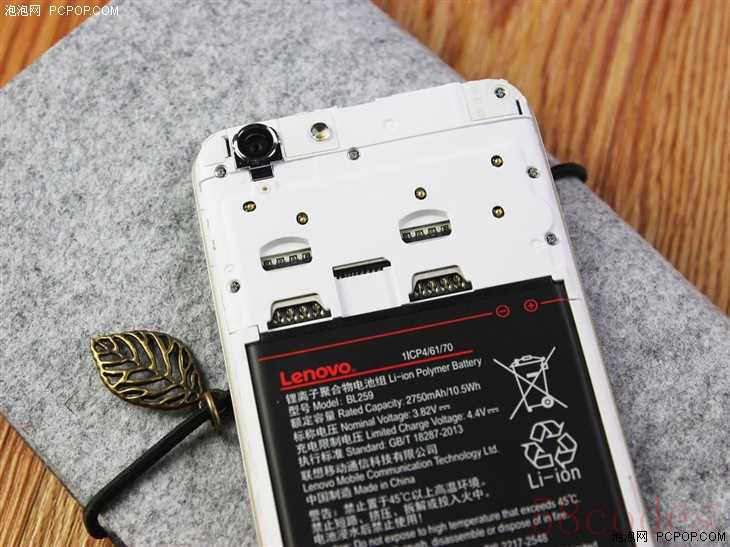 背部上方为一枚1300万像素的主摄像头、LED补光灯及一枚降噪麦克风。主镜头拥有蓝玻璃滤光片,相比之前的乐檬K3不论是在配置上还是成像效果上都有大幅度的提升。降噪麦克风可物理主动消除噪音,保证了通话的清晰。