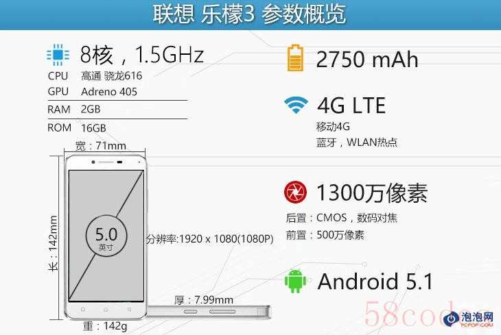 硬件配置上,联想乐檬3采用了骁龙616处理器及2GB RAM+16GB ROM的内存组合。