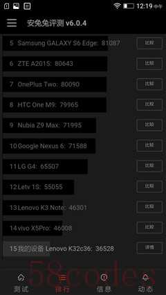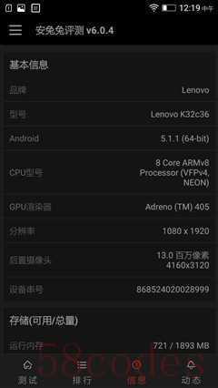 在安兔兔V6.0.4中,该机得分36528分,属于目前的中游水准,但较高的主频加良好的系统优化以及2GB+16GB的内存保证了该机在日常的使用中的流畅程度。