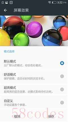 此外,该机的屏幕在支持传统的色温调节功能外,还加入了更多人性化的调节选项,例如默认模式、舒适模式和超亮模式,不仅如此,在自定义模式中用户还可调节屏幕的饱和度,设计可谓相当人性化。