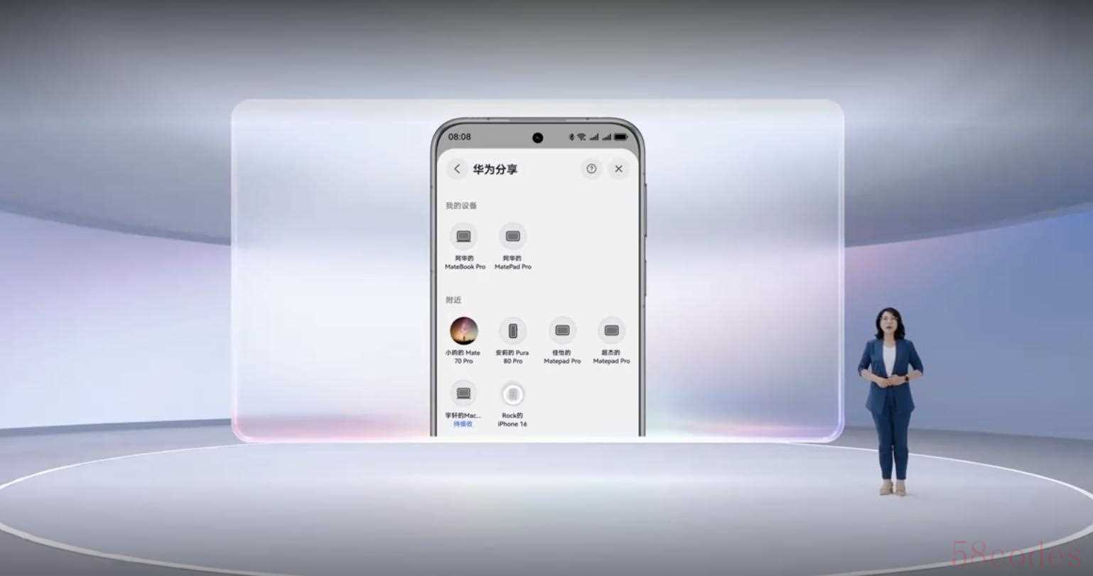 最新升级的鸿蒙6采用星河互联架构,在连接和感知能力方面有更好的表现,传输速率高达160MB/s。基于这一架构,用户可以通过简单的“碰一碰”,分享照片、音乐、链接等内容。