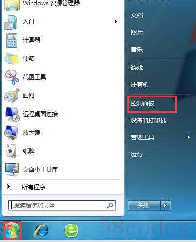 1、打开控制面板,也可以通过开始菜单进入,如图所示: