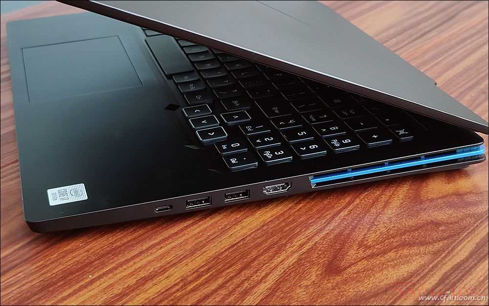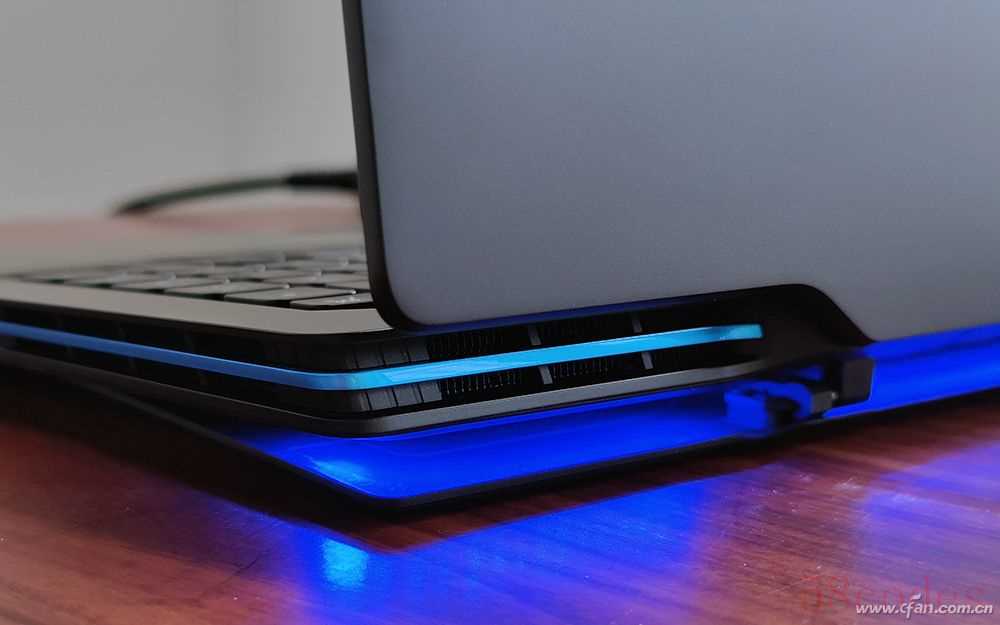实际上,这款产品最大的秘密和卖点就隐藏在创新的底盖设计上,官方将其称为“专利升降式风谷设计”。简单来说,荣耀猎人游戏本V700在D面底盖的基础上加入了一层额外的散热板,它与壳体转动连接。在关机合盖的状态下散热板收回,保持不足20mm锐薄的机身。