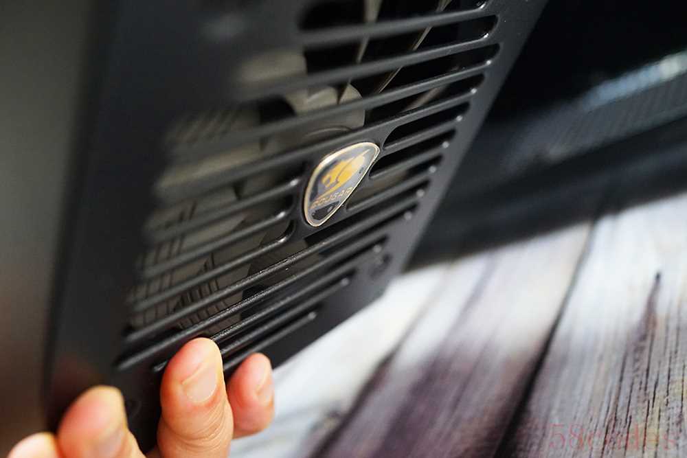 骨伽GEX电源在外形方面最具有辨识度的就是风扇这一侧了,它出风口的栅栏留的空隙较大,看上去比传统电源要更加粗犷一些,很符合电竞的风格。电源内置120mm智能风扇,在扇叶上能够看到导流槽,这对于提升空气导流能够起到促进效果。另外它搭配风控曲线调整技术能够降低风扇运行时的声音。